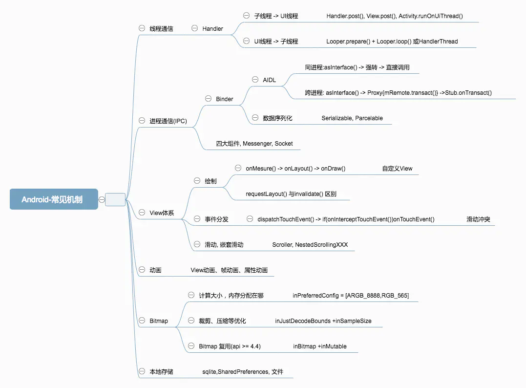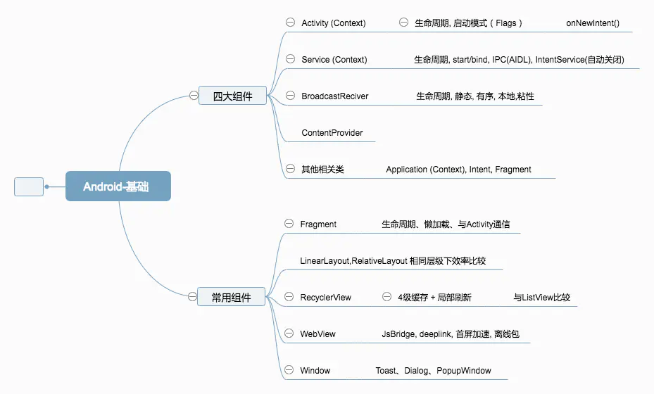 文中的脑图我都是分离开来说的,完整脑图请点击Android技术交流,如有需要,可自行查看。