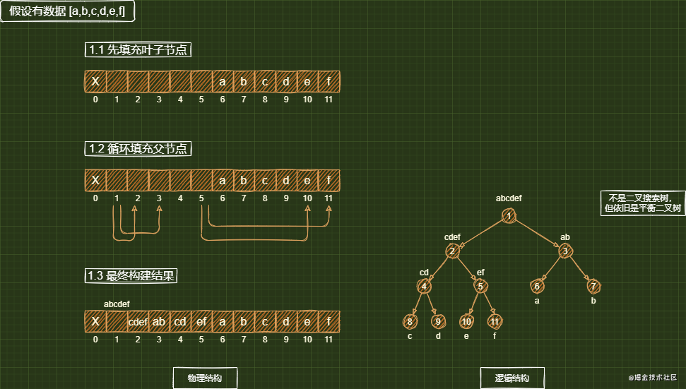 - 对于第[i][i][i]位上的节点,第[2∗i][2 * i][2∗i]位是左节点,第[2∗i+1][2 * i + 1][2∗i+1]位是右节点