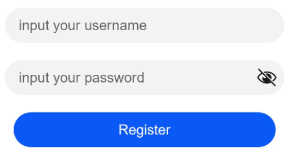 // xxx.ets @Entry @Component struct ButtonCase2 { build() { Column() { TextInput({ placeholder: 'input your username' }).margin({ top: 20 }) TextInput({ placeholder: 'input your password' }).type(InputType.Password).margin({ top: 20 }) Button('Register').width(300).margin({ top: 20 }) .onClick(() => { // 需要执行的操作 }) }.padding(20) } }