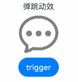 @State triggerValueReplace: number = 0; Column() { Text("弹跳动效") SymbolGlyph($r('sys.symbol.ellipsis_message_1')) .fontSize(96) .fontColor([Color.Gray]) .symbolEffect(new BounceSymbolEffect(EffectScope.WHOLE, EffectDirection.UP), this.triggerValueReplace) Button('trigger').onClick(() => { this.triggerValueReplace = this.triggerValueReplace + 1; }) }