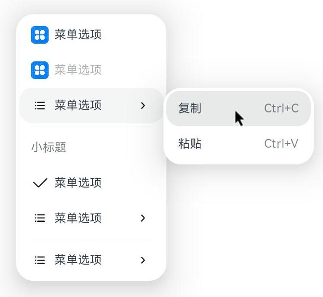 // 当builder参数进行配置时,表示与menuItem项绑定了子菜单。鼠标hover在该菜单项时,会显示子菜单。