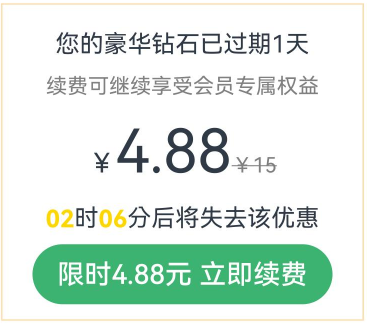Button("限时4.88元 立即续费")