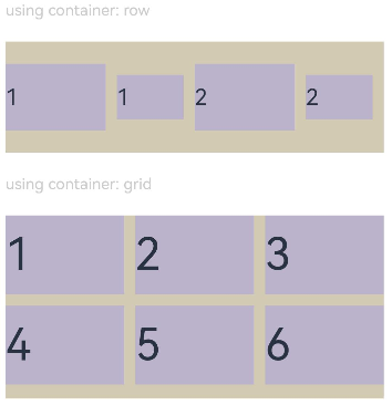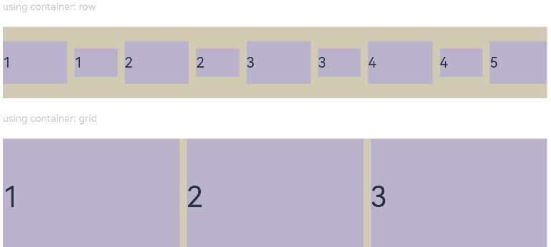 Text('using container: grid').fontSize(14).fontColor(0xCCCCCC).width('100%')