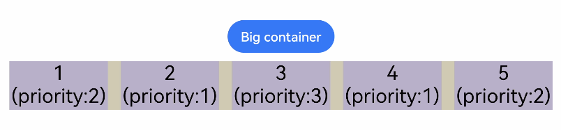| value | number | 是 | 设置当前组件在布局容器中显示的优先级。 默认值:1 说明: 小数点后的数字不作优先级区分,即区间为[x, x + 1)内的数字视为相同优先级。例如:1.0与1.9为同一优先级。 子组件的displayPriority均不大于1时,优先级没有区别。 当子组件的displayPriority大于1时,displayPriority数值越大,优先级越高。若父容器空间不足,隐藏低优先级子组件。若某一优先级的子组件被隐藏,则优先级更低的子组件也都被隐藏。 |