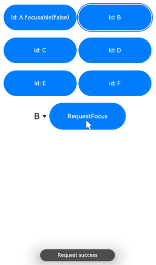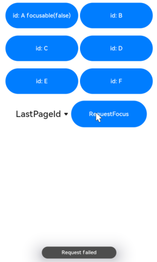 方法语句中可使用的全局接口,调用此接口可以主动让焦点转移至参数指定的组件上。非当前帧生效,在下一帧才生效,建议使用FocusController中的requestFocus。