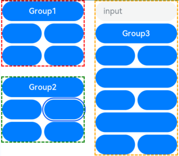 | isGroup | boolean | 否 | 设置当前容器组件是否为焦点组。 说明: 焦点组不可嵌套,不可重复配置。 焦点组不能和tabIndex混用。 配置焦点组的目的时使得容器及容器内的元素可以按照焦点组规则走焦。焦点组走焦规则: 1.焦点组容器内只能通过方向键走焦,tab键会使焦点跳出焦点组容器。 2.通过方向键使焦点从焦点组容器外切换到焦点组容器内时,若焦点组容器内存在优先级为PREVIOUS的组件,则优先级为PREVIOUS的组件获焦,否则,由焦点组容器内上次获焦的组件获焦。 |