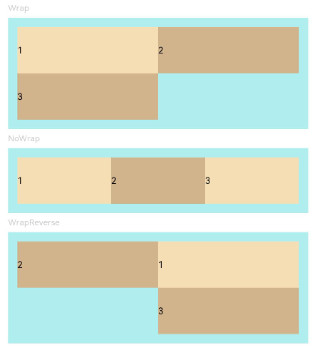 | wrap | FlexWrap | 否 | Flex容器是单行/列还是多行/列排列。 默认值: FlexWrap.NoWrap 说明: 在多行布局时,通过交叉轴方向,确认新行堆叠方向。 卡片能力: 从API version 9开始,该接口支持在ArkTS卡片中使用。 |