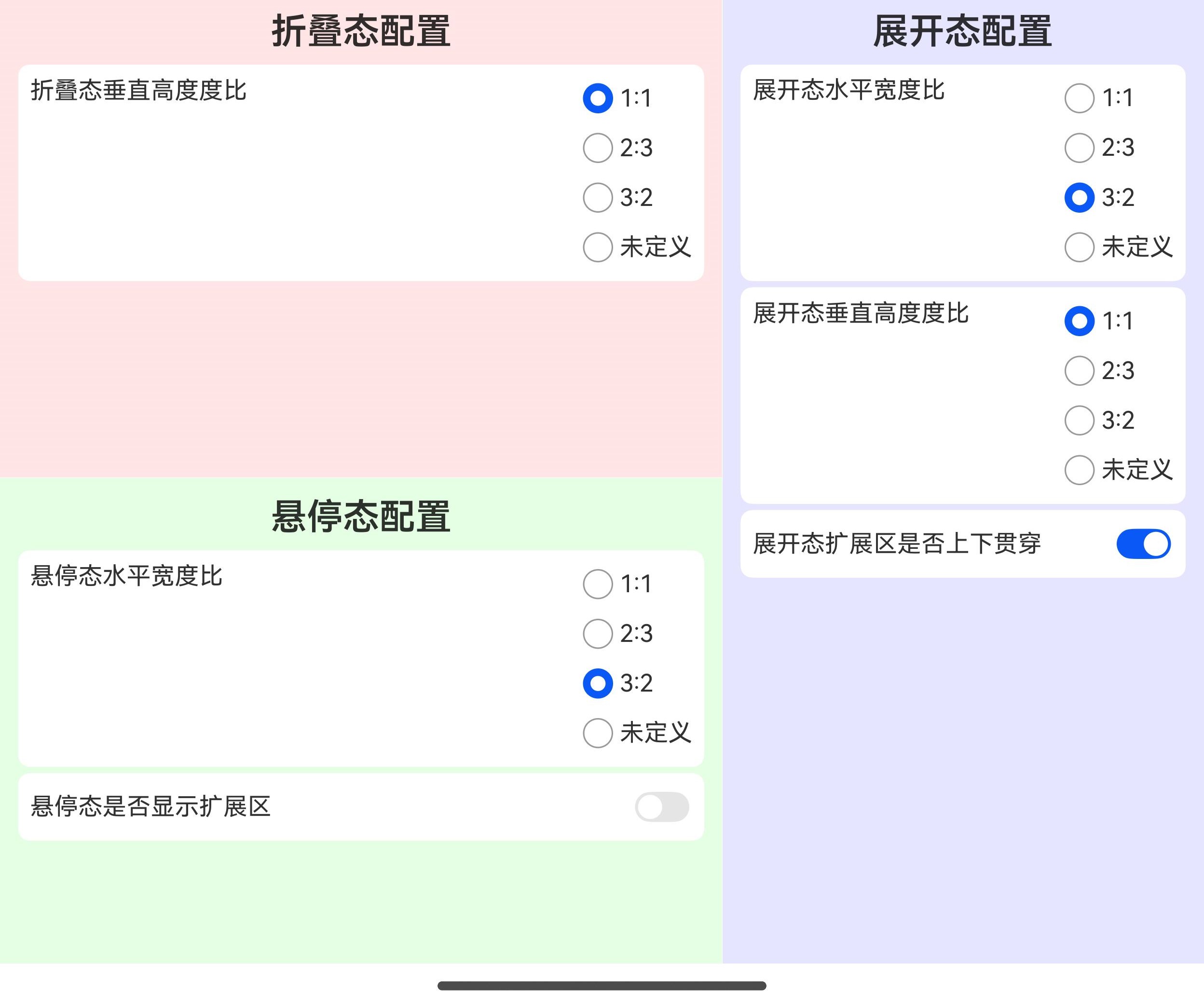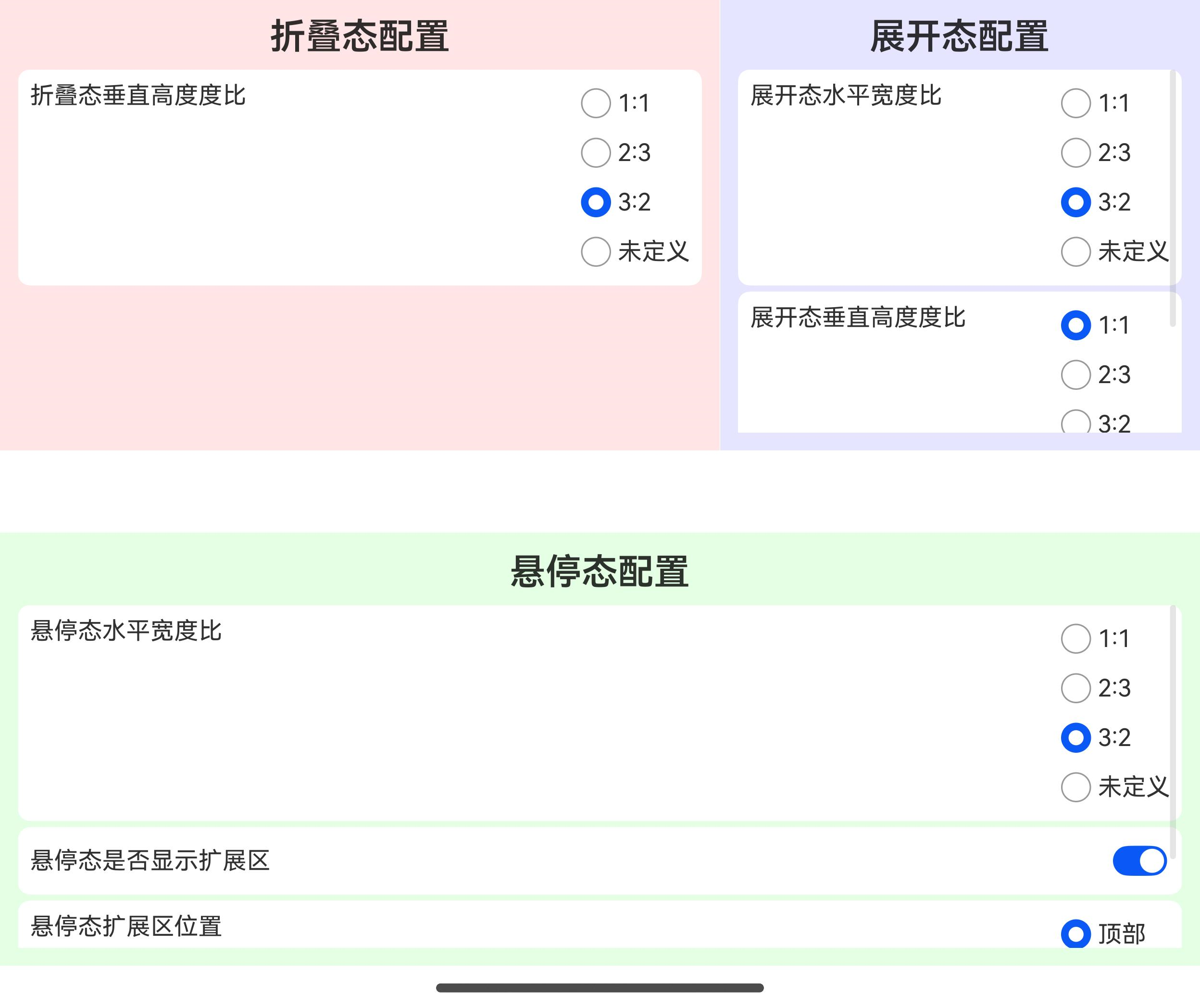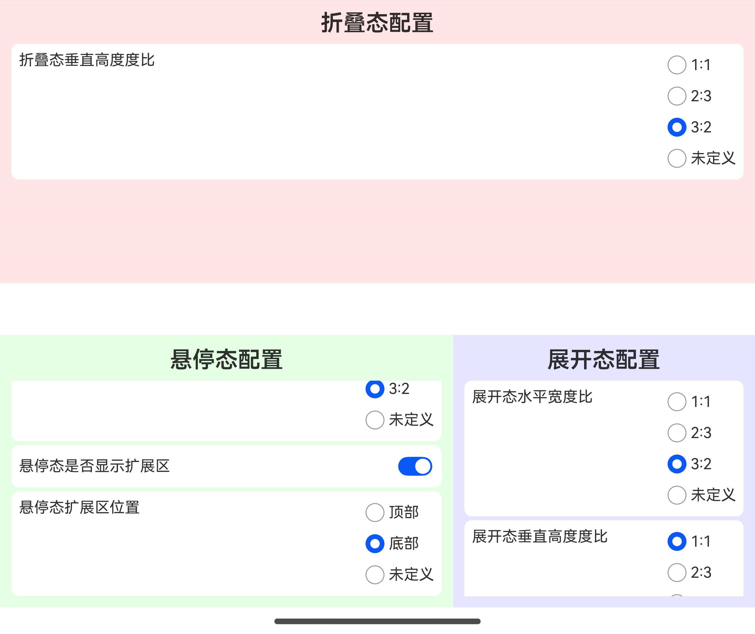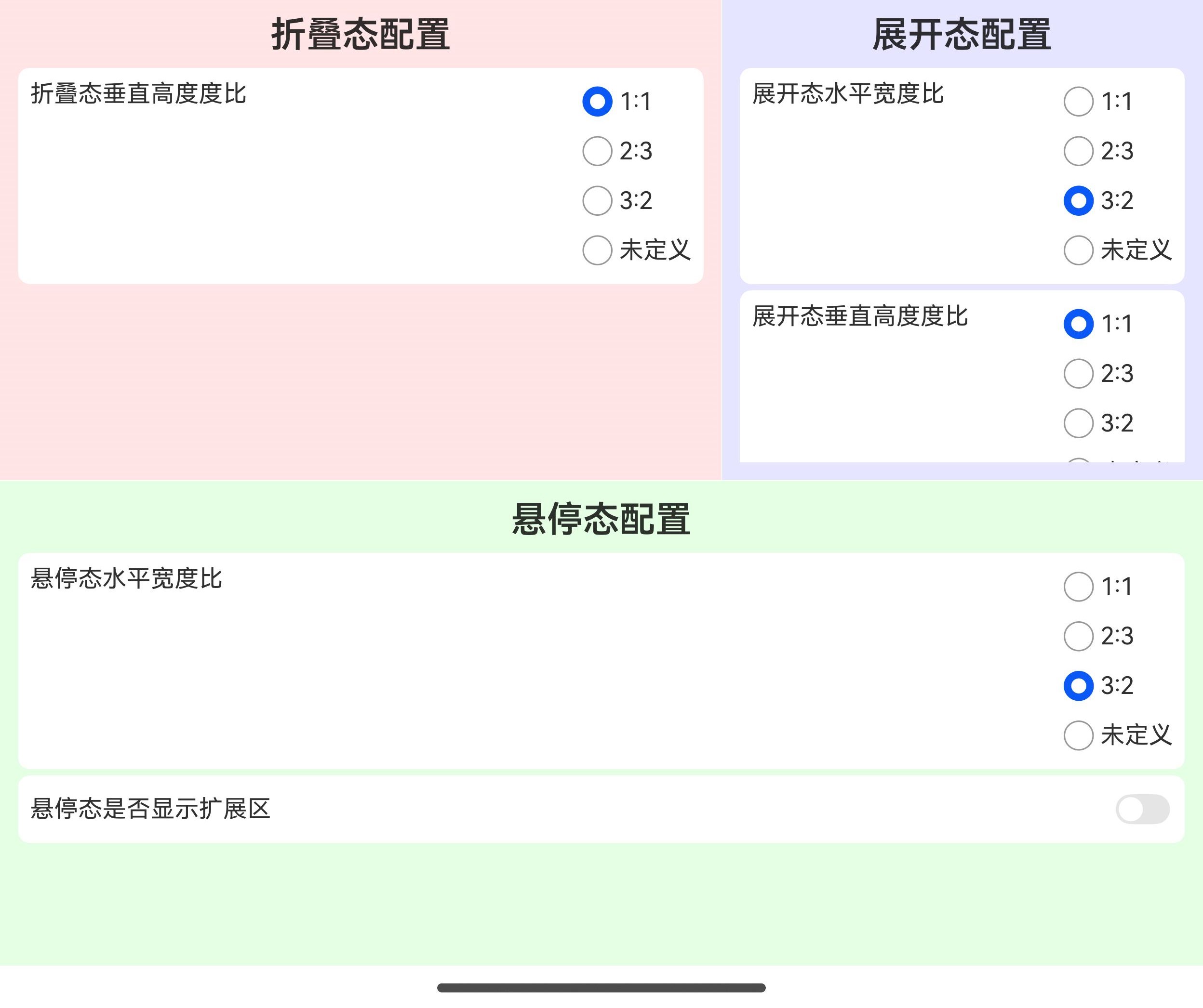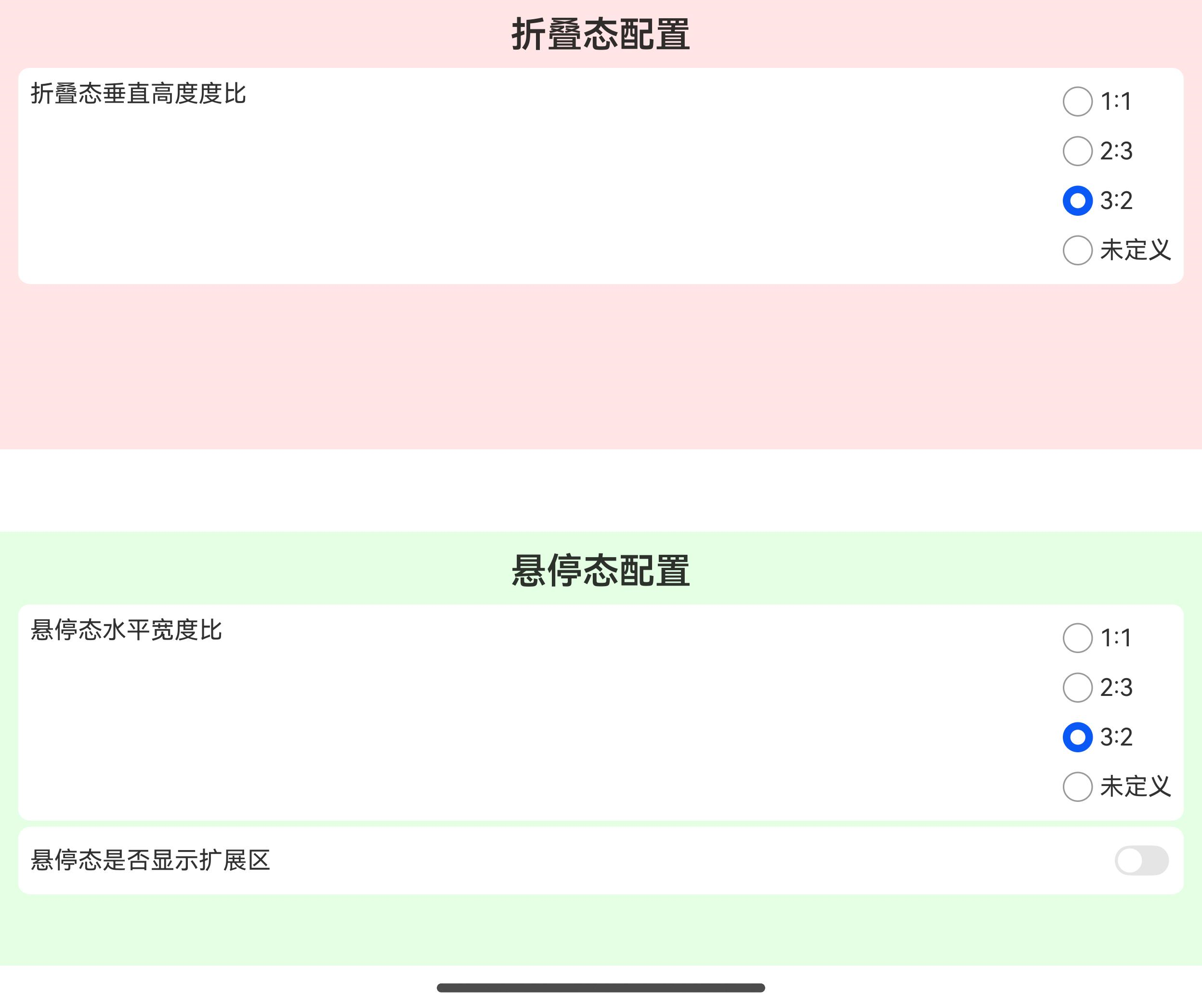 该示例实现了折叠屏二分栏在展开态、悬停态以及折叠态的区域控制。