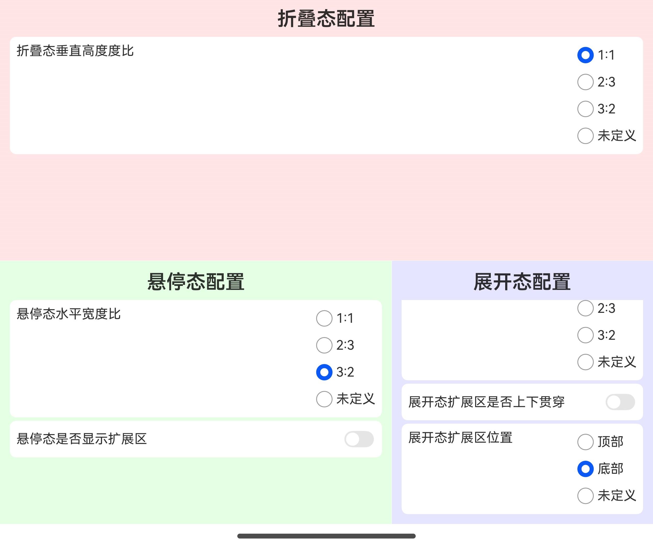 | showExtraRegion | boolean | 否 | 可折叠屏幕在半折叠状态下是否显示扩展区域。默认值:false。 |