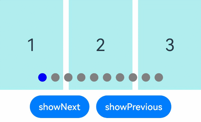 该示例通过DotIndicator接口的maxDisplayCount属性,实现了圆点导航点超长显示动画效果。
