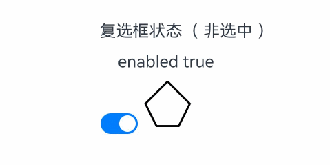 该示例实现了自定义复选框样式的功能,自定义样式实现了一个五边形复选框,如果选中,内部会出现红色三角图案,标题会显示选中字样,如果取消选中,红色三角图案消失,标题会显示非选中字样。