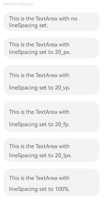 TextArea({ placeholder: 'This is the TextArea with lineSpacing set to 20_vp.' })