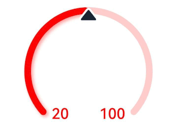 设置终止角度位置。起始角度位置和终止角度位置差过小时,会绘制出异常图像,请取合理的起始角度位置和终止角度位置。建议使用单色环改变Gauge的value参数实现数据值的调节,可通过定时器setTimeout进行数值的延迟加载。