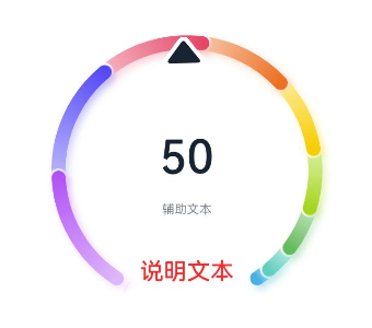 | value | CustomBuilder | 是 | 说明内容。 说明: @Builder中的内容由开发者自定义,建议使用文本或者图片。 若自定义部分的宽高为百分比形式,则基准范围为圆环直径的44.4%*25.4%的矩形(图片为28.6%*28.6%),距离圆环底部0vp,左右居中。 设置null则不显示内容。 不设置则依赖是否设置数据最大最小值。 若设置最大最小值或者只设置其中一个,则显示最大最小值。 若未设置最大最小值,则不显示内容。 最大最小值显示在圆环底部,位置不可移动,若圆环开口角度设置不恰当,存在圆环遮挡文字的情况。 |