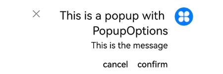 | icon | PopupIconOptions | 否 | 设置popup图标。 说明: 当size设置异常值或0时不显示。 |