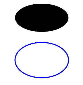 // 绘制一个 150 * 100 、线条为蓝色的椭圆环