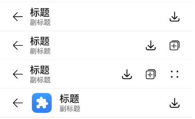 该示例实现了简单的标题栏,带有返回箭头的标题栏和带有右侧菜单项目列表的标题栏。