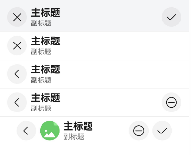 编辑型标题栏,适用于多选界面或者内容的编辑界面,一般采取左叉右勾的形式。