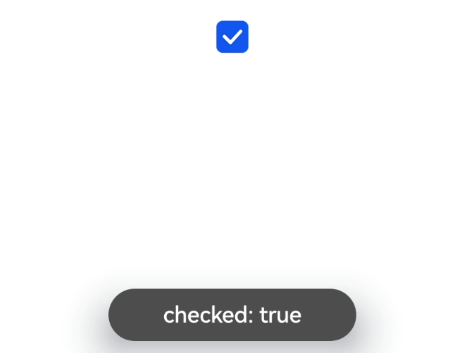 <!-- xxx.hml --> <div class="content"> <input onchange="checkboxOnChange" checked="true" type="checkbox"></input> </div>/* xxx.css */ .content{ width: 100%; height: 200px; align-items: center; justify-content: center; }// xxx.js import promptAction from '@ohos.promptAction' export default { checkboxOnChange(e) { promptAction.showToast({ message:'checked: ' + e.checked, duration: 3000, }); } }