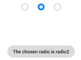 <!-- xxx.hml --> <div class="content"> <input type="radio" checked='true' name="radioSample" value="radio1" onchange="onRadioChange('radio1')"></input> <input type="radio" checked='false' name="radioSample" value="radio2" onchange="onRadioChange('radio2')"></input> <input type="radio" checked='false' name="radioSample" value="radio3" onchange="onRadioChange('radio3')"></input> </div>/* xxx.css */ .content{ width: 100%; height: 200px; justify-content: center; align-items: center; }// xxx.js import promptAction from '@ohos.promptAction' export default { onRadioChange(inputValue, e) { if (inputValue === e.value) { promptAction.showToast({ message: 'The chosen radio is ' + e.value, duration: 3000, }); } } }