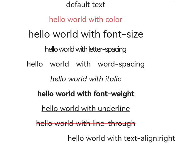 | text-decoration | string | none | 否 | 设置文本的文本修饰,可选值为: - underline:文字下划线修饰; - line-through:穿过文本的修饰线n - none:标准文本。 |