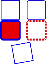 <rect width="100" height="100" x="10" y="130" stroke-width="10" fill="red" stroke="blue" rx="10" ry="10"></rect>