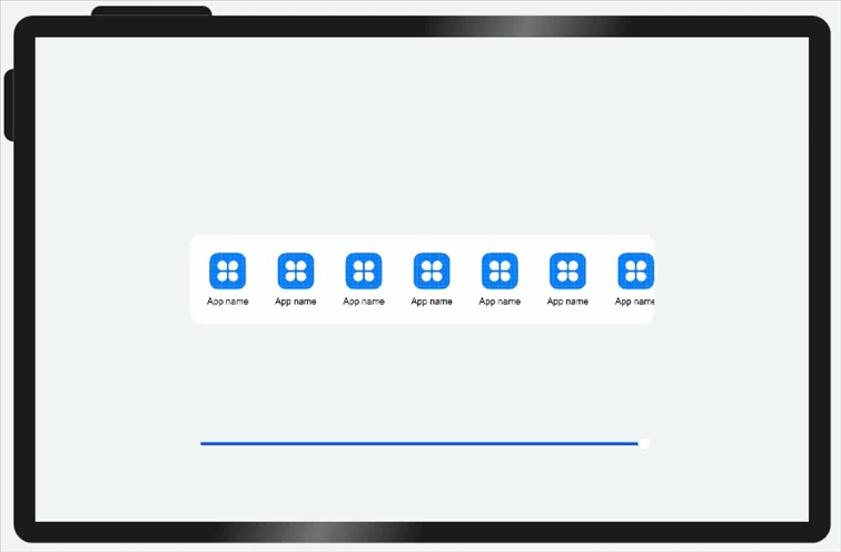 父容器尺寸变化过程中,图标及文字的尺寸不变,图标间的间距及图标离左右边缘的距离同时均等改变。
