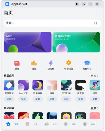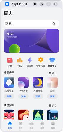 随着可用显示区域的增加,精品应用中显示的图标数量也不断增加,这是典型的延伸能力使用场景。精品游戏的实现与精品应用类似,不再展开分析。