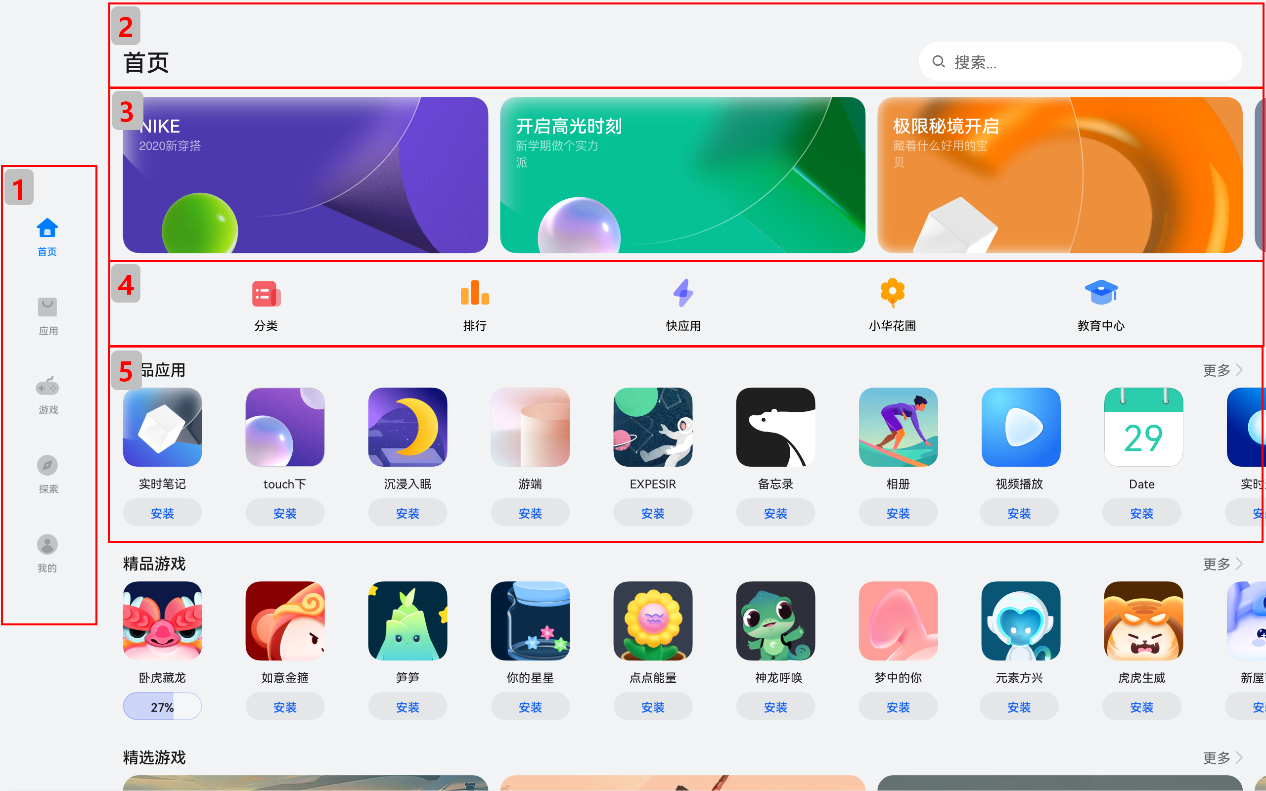 一个典型的应用市场首页的UX设计如下所示。