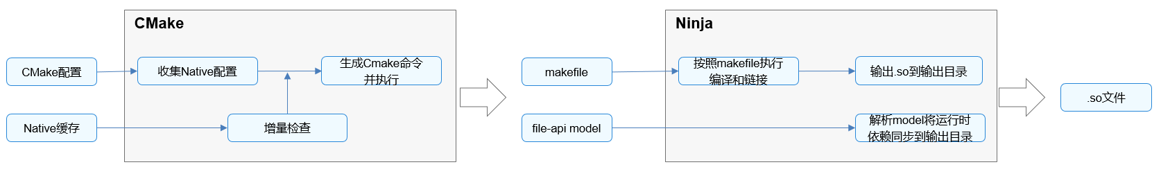 NDK通过CMake和Ninja编译应用的C/C++代码,编译过程如下图所示。