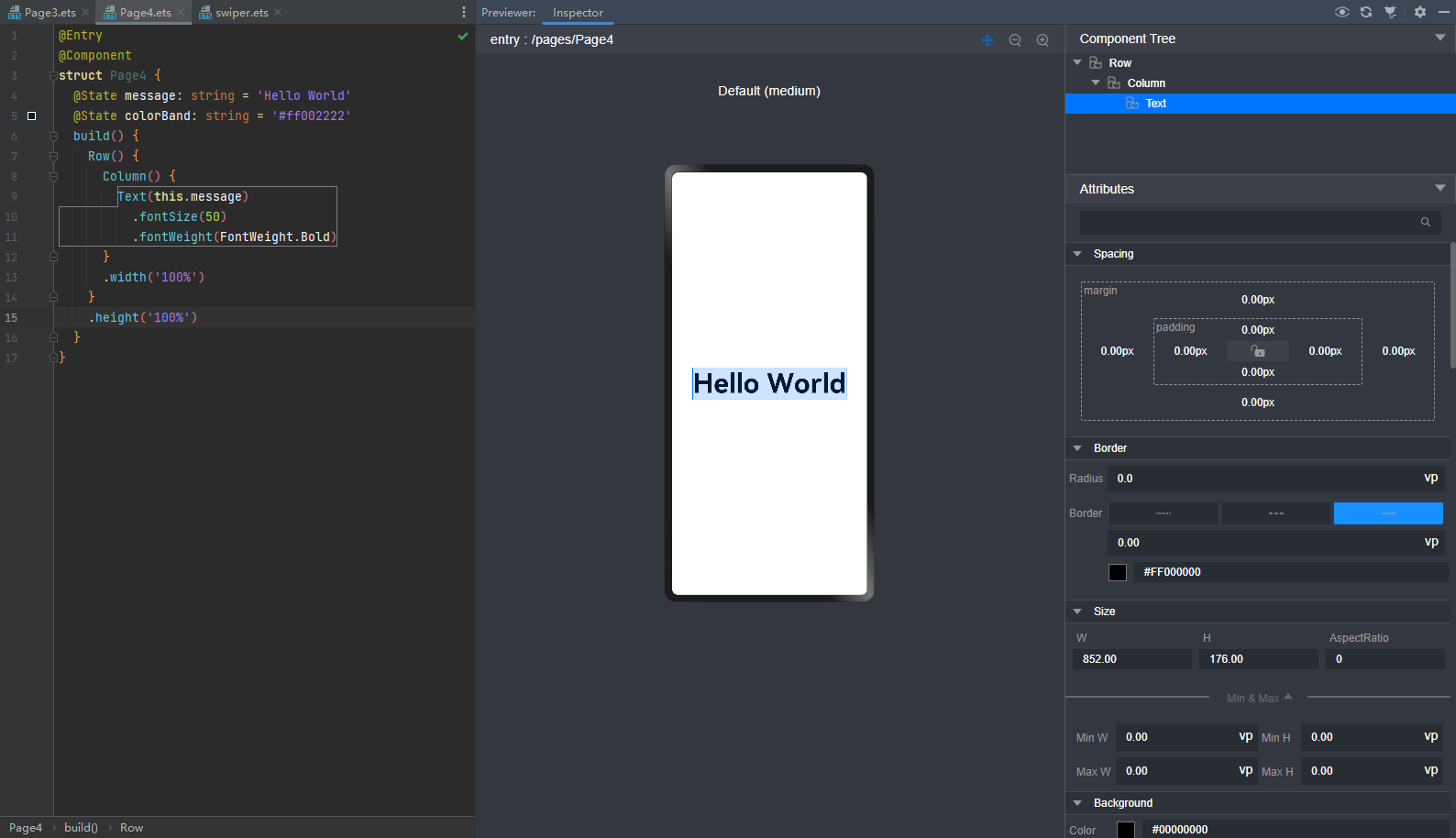 在预览界面还可以通过组件的属性面板修改可修改的属性或样式,在预览界面修改后,预览器会自动同步到代码编辑器中修改源码,并实时的刷新UI界面;同样的,如果在代码编辑器中修改源码,也会实时刷新UI界面,并更新组件树信息及组件属性。