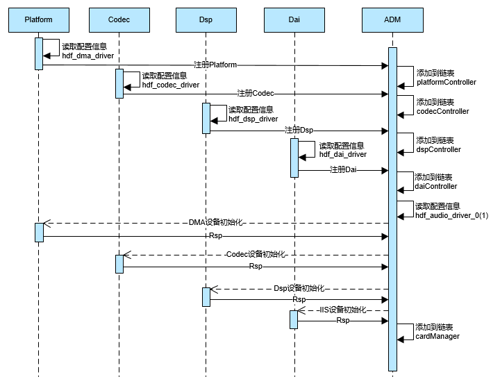 ADM模块读取hdf_audio_driver_0和hdf_audio_driver_1配置信息,加载各模块的具体设备。