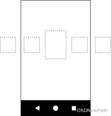 从上文中知道,屏幕只能显示中间的三个 View。 start 就是开始的状态,这个时候一共有 A、B、C、D 和 E 五个 View,屏幕中显示的是 B、C 和 D。当发生向后滑动的时候,B、C、D 和 E 移动到了 A、B、C 和 D 的位置(A 组件可以不处理),屏幕中看见的是C 、D 和 E。向前滑动同理。