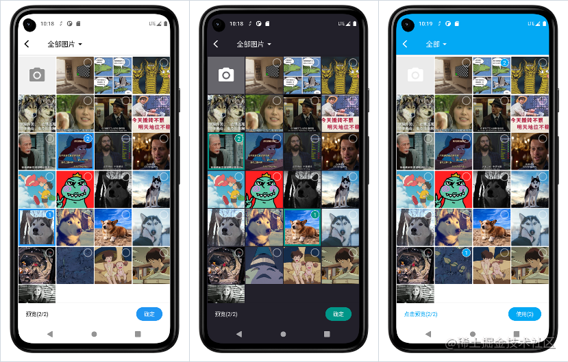 由于以上问题,也让我有了彻底放弃 Matisse,自己来实现一个新的图片选择框架的打算,也实现得差不多了,最终的效果如下所示