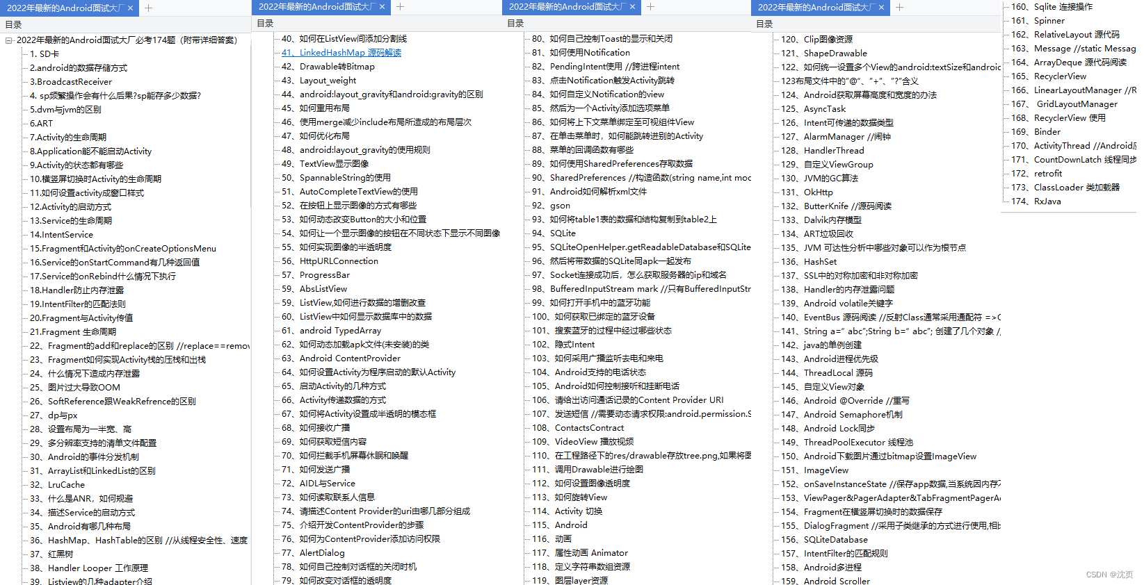 这套「Android面试174题」包含算法、四大组件、JVM虚拟机、Jetpack、Framework层、性能优化等真题和答案。