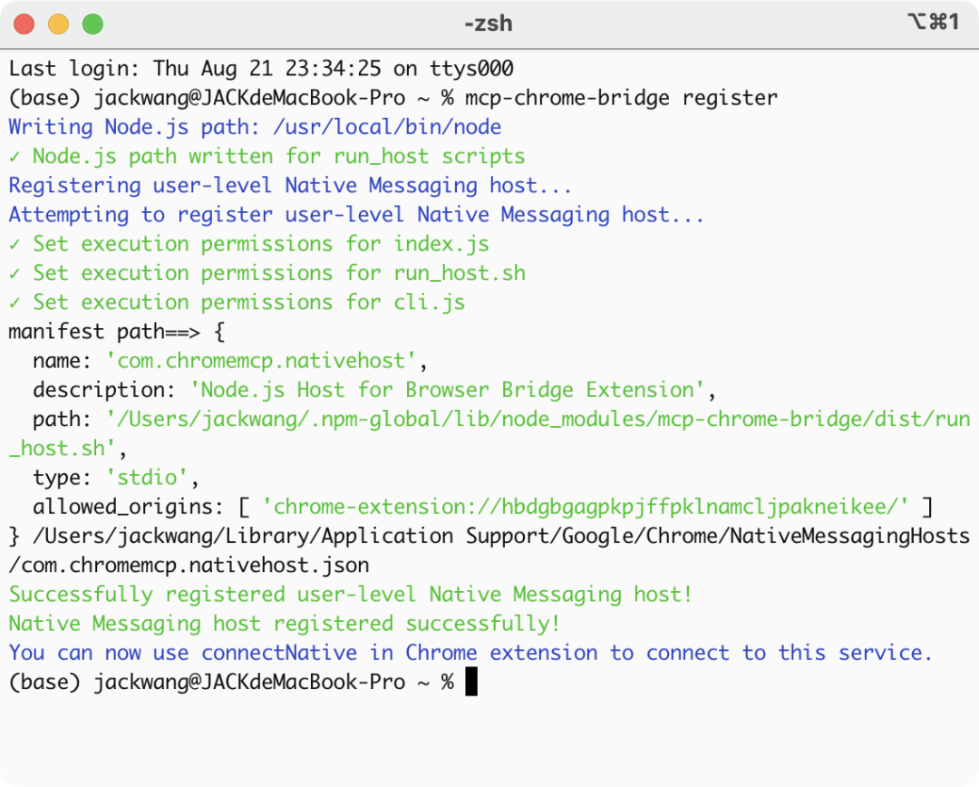 安装完成后注册Native Messaging host: