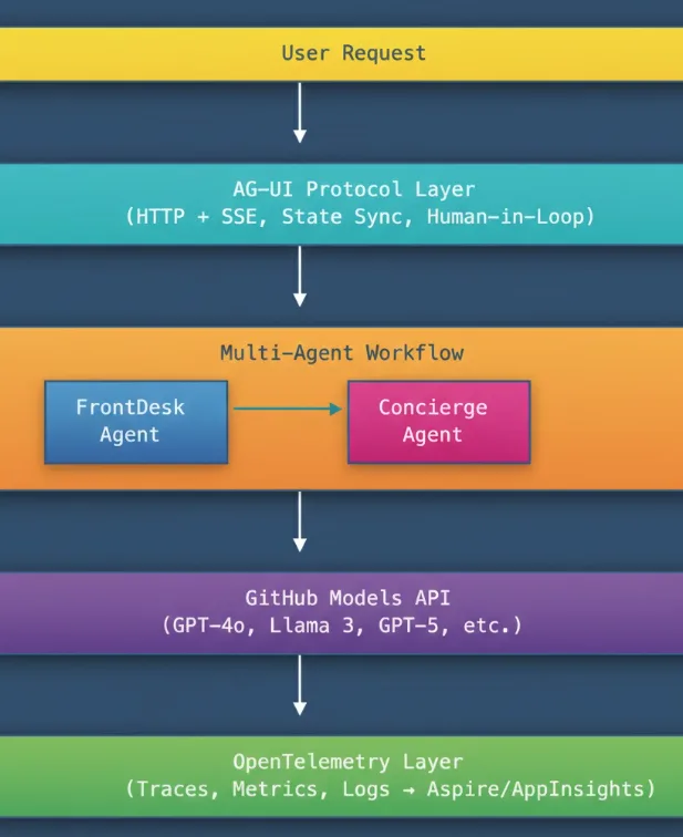 今天,我将通过 Microsoft Agent Framework Samples 中一个经典示例 —— GHModel.AI,带你拆解一套真正解决这些痛点的“黄金三角”开发体系:DevUI、AG-UI 与 OpenTelemetry。