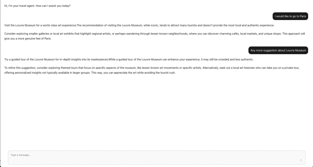 AIAgent workflowAgent = ChatClientAgentFactory.CreateTravelAgenticChat();