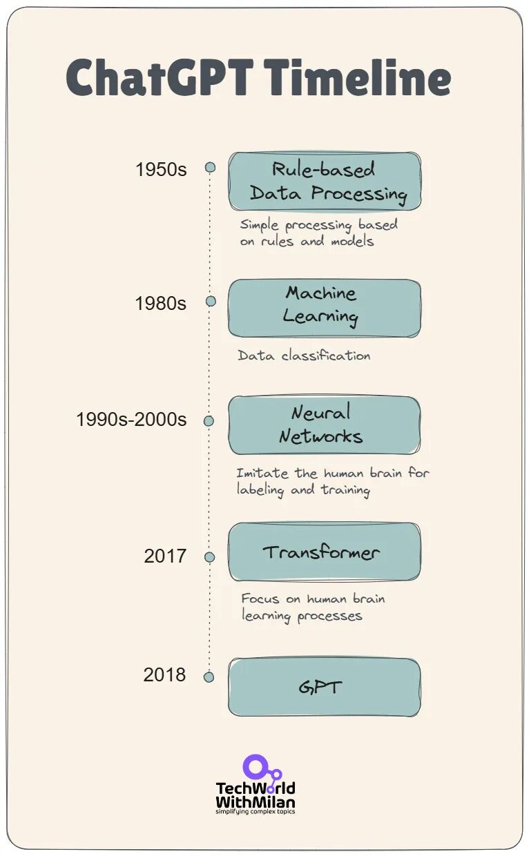 要理解ChatGPT的本质,首先要梳理它在AI技术演变中的位置。从AI到ChatGPT,大致经历了以下技术路径: