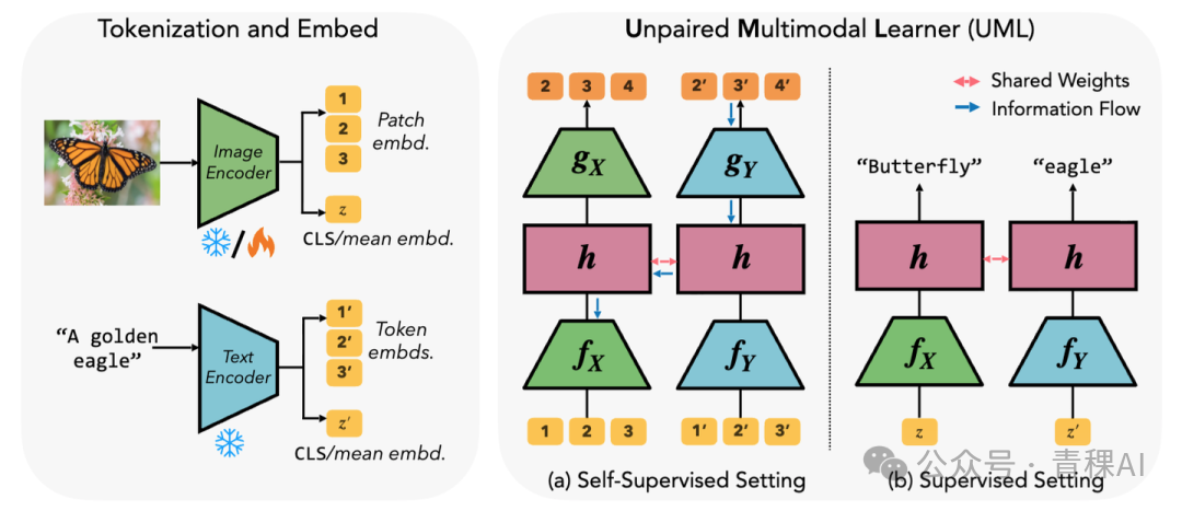 | 非配对数据训练(unpaired training) | 无配对多模态表征学习 | 无需严格配对的多模态数据 | Unpaired Multimodal Learner (2025)、DoraCycle (2025) |
