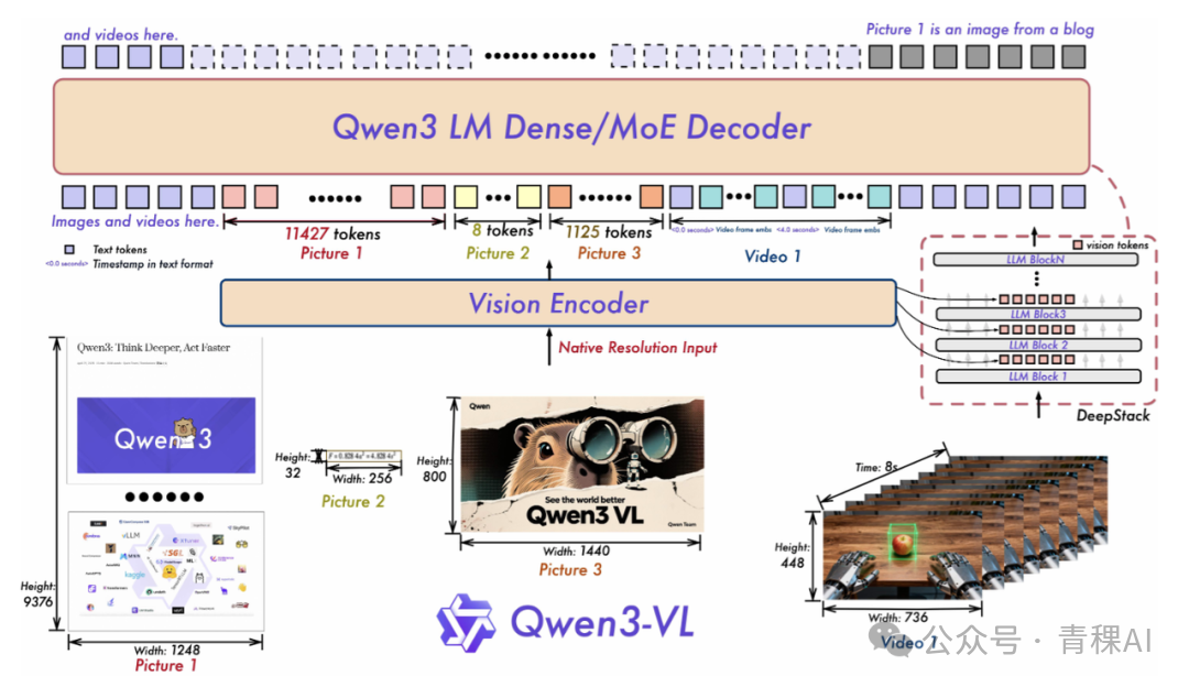 - 视觉 Token 统一化与多尺度化: 越来越多模型采用统一的 Multimodal MoE + Multi-scale 视觉 token 结构,使 LLM 能直接读取视觉层级信息(如 Qwen3-VL、Qwen3-Omni)。