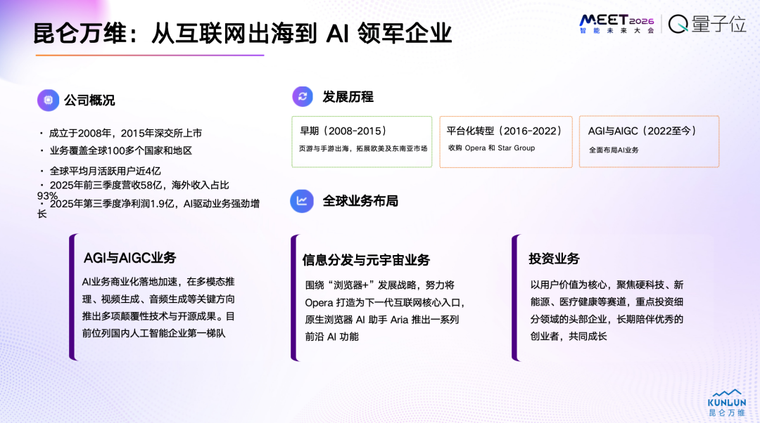 自成立以来,昆仑万维深耕全球市场,拥有全球化运营能力,我们收入92%来自于海外,这种深厚的国际化基因使得我们在AI时代可以理解不同市场的需求,并且把AI的产品和服务更高效地推广到全球。