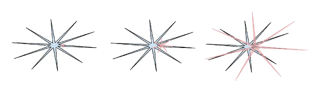 人类智能是蓝色的圆,AI智能是红色的刺状图形