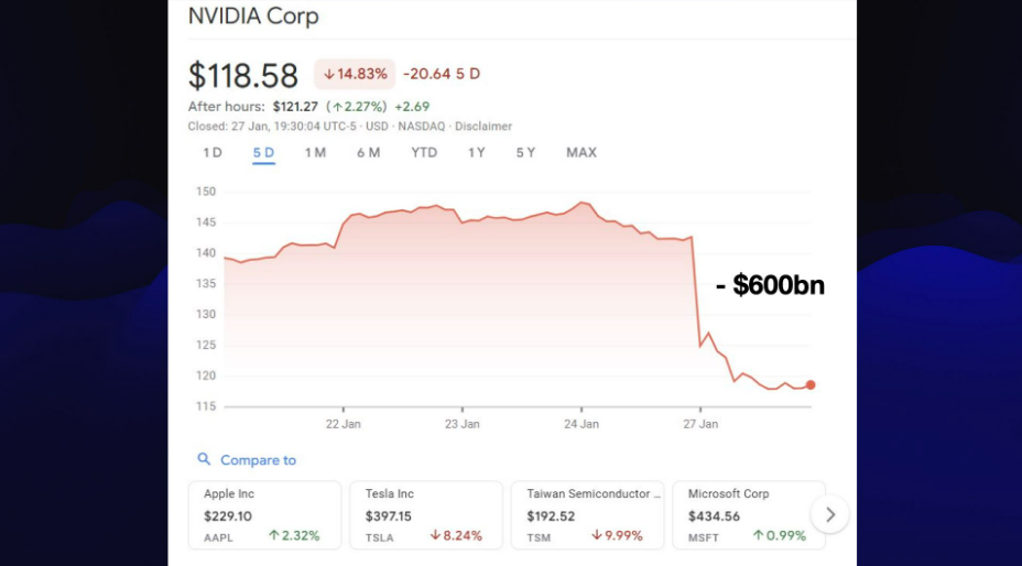 中国模型的这场革命,真正的起点可以追溯到 2024 年圣诞节 DeepSeek 3 的发布,据称其训练成本约为 550 万美元。随后,DeepSeek 于 1 月 20 日推出 DeepSeek R1,迅速引发了一场 AI 和半导体板块的大规模抛售,投资者开始恐慌,意识到 AI 或许并非被美国垄断,英伟达市值一度蒸发约 5930 亿美元。