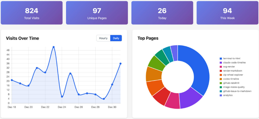 其他很多工具对我自己的工作流程非常有用,比如 svg-render、render-markdown 和 alt-text-extractor。我还做了一个隐私友好的个人分析工具,它基于 localStorage 跟踪我最常用的工具。