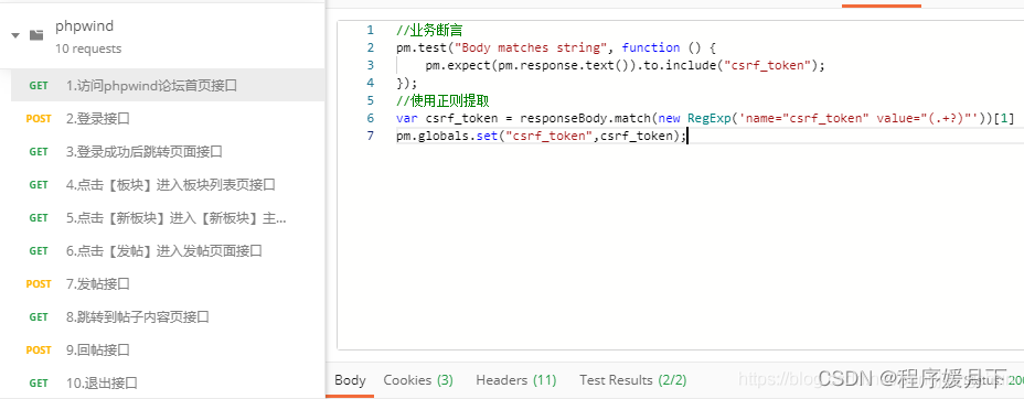 Tests:请求之后的断言脚本,用于判断请求是否成功!