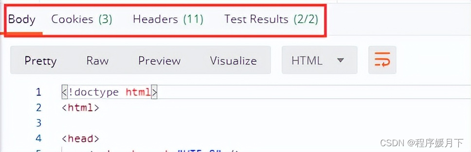 Body:响应的数据(Pretty:json格式,Raw:文本格式,Preview:网页格式)