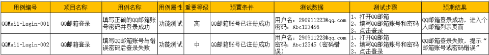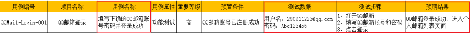 在实际工作中根据项目要求对用例设计要素可做调整,下图基本覆盖常见用例设计模板。