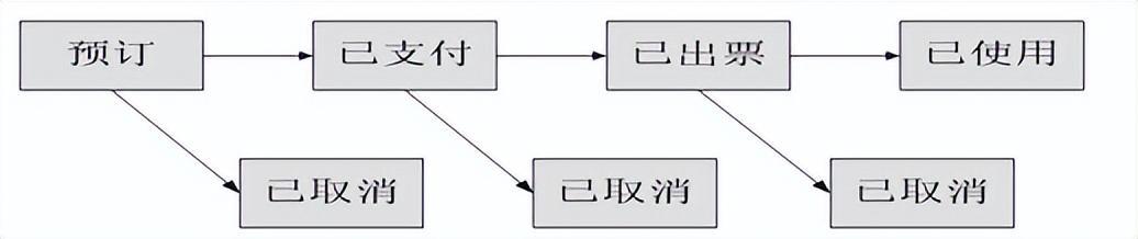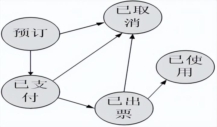 抽取四条路径: 路径1:预订—已取消 路径2:预订—已支付—已取消 路径3:预订—已支付—已出票—已取消 路径4:预订—已支付—已出票—已使用