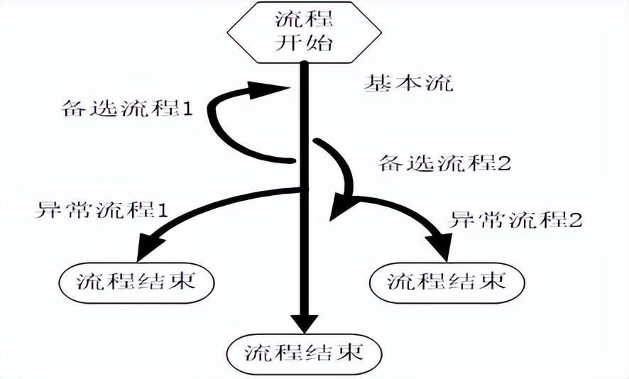 场景1:基本流 场景2:基本流—备选流程1—基本流 场景3:基本流—备选流程2—基本流 场景4:基本流—异常流程1 场景5:基本流—备选流程2—异常流程2 场景6:基本流—备选流程1—备选流程2—异常流程2 场景7:基本流—备选流程1-备选流程2—基本流 场景8:基本流—备选流程1—异常流程1 案例:支付宝个人账户注册——验证用户名需求:第一项要求输入手机号或者电子邮箱作为账户名,第二项要求正确输入验证码,两项都验证成功后填写账户信息;但如果第一项校验不正确,则报错L(输入手机号或电子邮箱格式错误);如果第二项验证不成功,则报错M(验证码输入错误)。